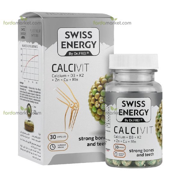 کپسول کلسی ویت سوئیس انرژی (Calcivyte Swiss Energy) یک مکمل پیشرفته و تخصصی برای حفظ سلامت ساختار اسکلتی بدن است. استخوان‌های ما به طور مداوم در حال بازسازی هستند و بدن روزانه مقادیر قابل‌توجهی کلسیم را از دست می‌دهد. این محصول با تأمین ترکیبی هم‌افزا (سینرژیک) از مهم‌ترین مواد معدنی و ویتامین‌ها، نه تنها کمبودهای تغذیه‌ای را جبران می‌کند، بلکه به طور مستقیم بر استحکام استخوان‌ها و دندان‌ها تأثیر می‌گذارد.